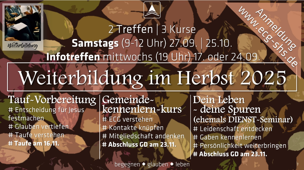 Sich weiter zu entwickeln und Fortschritt zu erleben ist für jeden Menschen motivierend. Als Kirche wollen wir aus der Bibel und voneinander lernen und so jeden Tag ein kleines Stück persönliches Wachstum erfahren: In unserer Gottesbeziehung, in der Nächstenliebe und auch in unseren Fähigkeiten und Gaben.